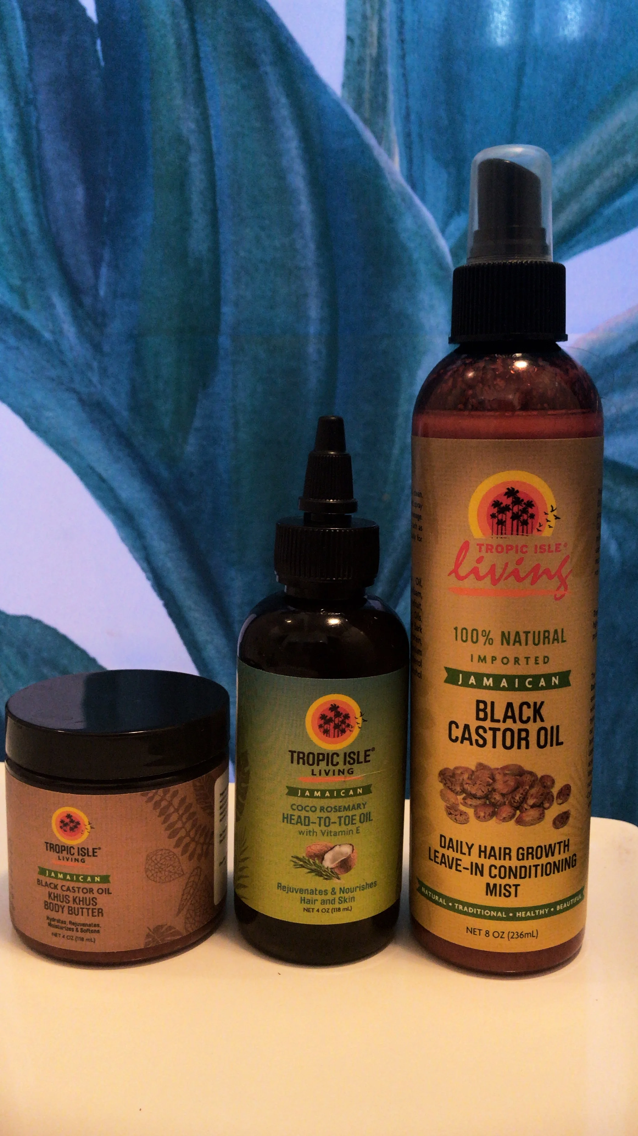 Step 2: I added Tropic Isle Living Coco Rosemary Head to Toe Oil throughout my hair. This helps with hair growth as well as moister. PS, it can also be used for the body as well.