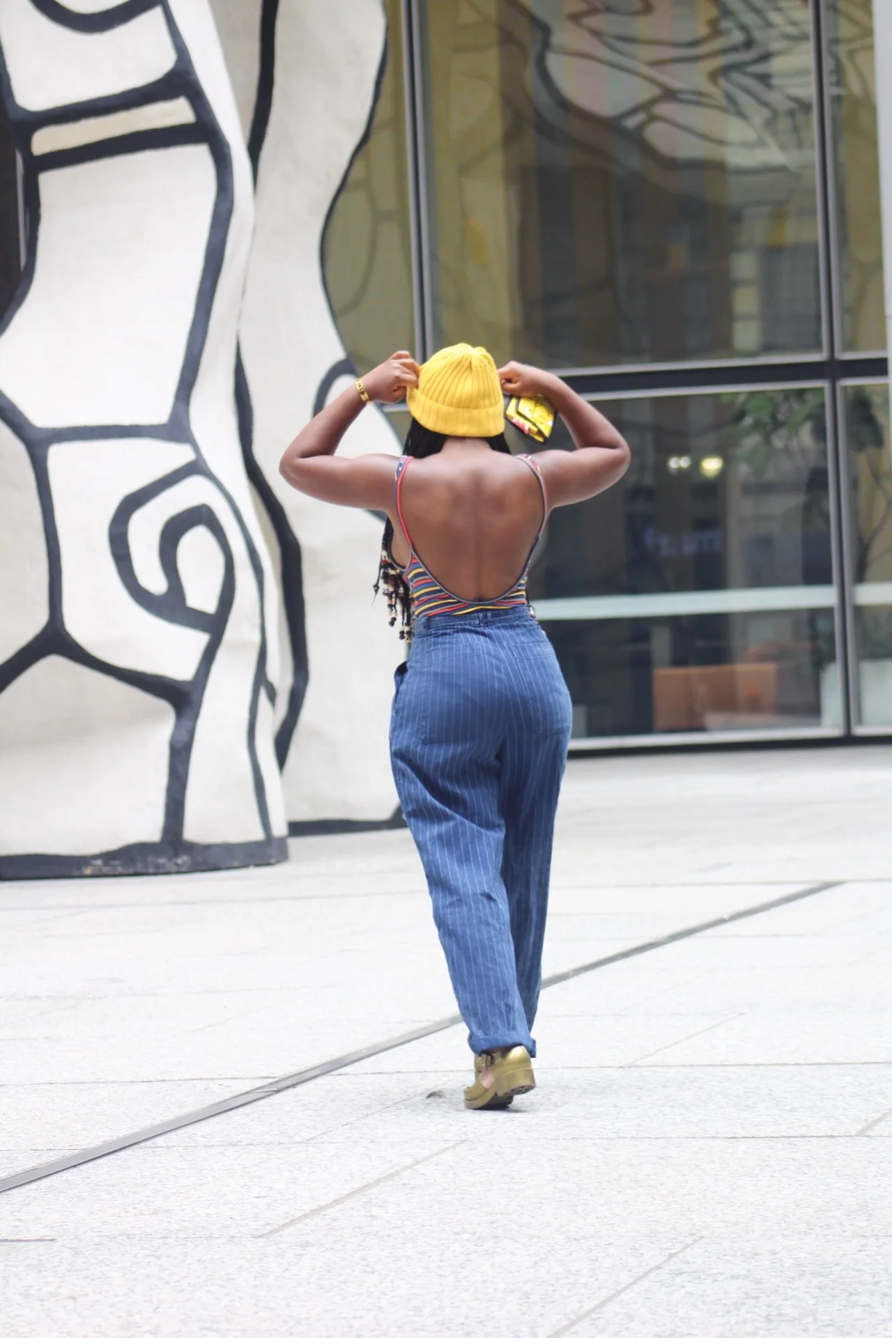 Alright, alright, alright, don't worry I didn't forget to talk about my outfit, I know that's what you all are waiting. Sorry for getting a bit too emotional, I just felt like expressing myself to you all and I hope that is ok....Any who, the outfit that I have on down below is is difiently an in to fall end of summer outfit. Transitioning into seasons is much easier than we think. The leotard that I am wearing is a summer piece but can be well represented in the fall as well. I paired it with a nice fall beenie to show an example of what I mean. If I wore a nice jacket with this outfit, I would have been all ready for the fall season, but we are not there yet, we are still in the transitioning phase. Pairing a leotard like this with an oversized high waisted denim gave me the feeling of chill and cool. This outfit is difenetly a weekend super chill, type of outfit. It is cute and that is where it stops. Not everything we wear has to be a big production, many times low maintenance is and can be the way to go. I hope you try this super cute outfit out and let me know your thoughts, you have my email, until next time.